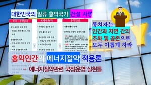 [홍익인간의 에너지절약론-57] 향후 대한민국의 국익 우선추구 원칙 하에 개인・가정・사회・민족・국가 등의 홍익인간 관점과, 각각 몫에 따른 배분・행복 기여・차별 배제와 같은 방식으로, 경제・비경제적 가치 지향적 국정운영에 관한 국가전략을 추진함으로써 대한민국의 일류강국과 세계 등불의 홍익국가 기대..[21세기 세계 주도적 전통사상인 홍익인간 사상의 현대 적용에 의거 인간과 자연 간의 조화 및 공존을 지향할 수 있도록 국가 에너지절약정책의 현대적 환경이념 구현방향을 강구해 보고자 한다. 본 내용은 임기추박사의 저서 “현대홍익에너지절약