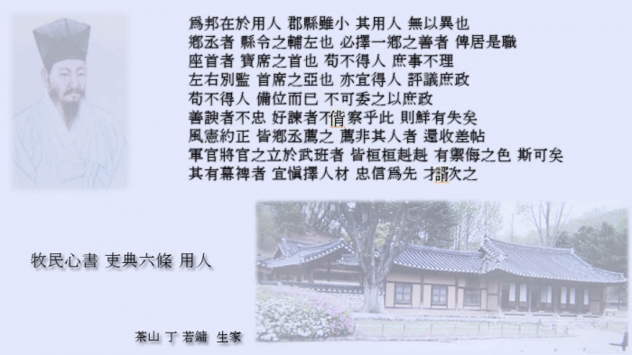 어떻습니까? 정조 대왕과 다산의 인재에 대한 안목이 높았음을 분명하게 알게 해주는 내용 아닌가요? 다산의 안목을 거론하면서 왜 오늘의 정부에는 인재를 제대로 추천해주는 사람이 있는지, 아니면 인재를 보는 안목이 부족한 것인지 걱정을 안 할 수가 없습니다.