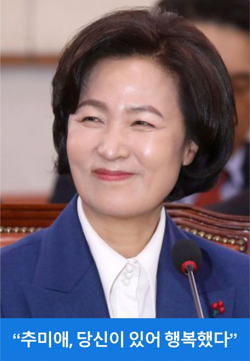 이어 "문재인 대통령의 말씀처럼 추미애가 아니었으면 공수처법 통과도 검찰개혁도 어려웠을 거"라며 "추 장관이 든든하게 버티고 있었기에 검찰의 저항을 물리칠 수 있었다. 추미애 덕분이다"라고 감사의 마음을 표했다.
