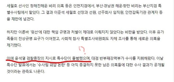 윤석열 지시로 출범한 검찰특수단 "세월호 수사 외압 없었다"..1년2개월 수사 종료