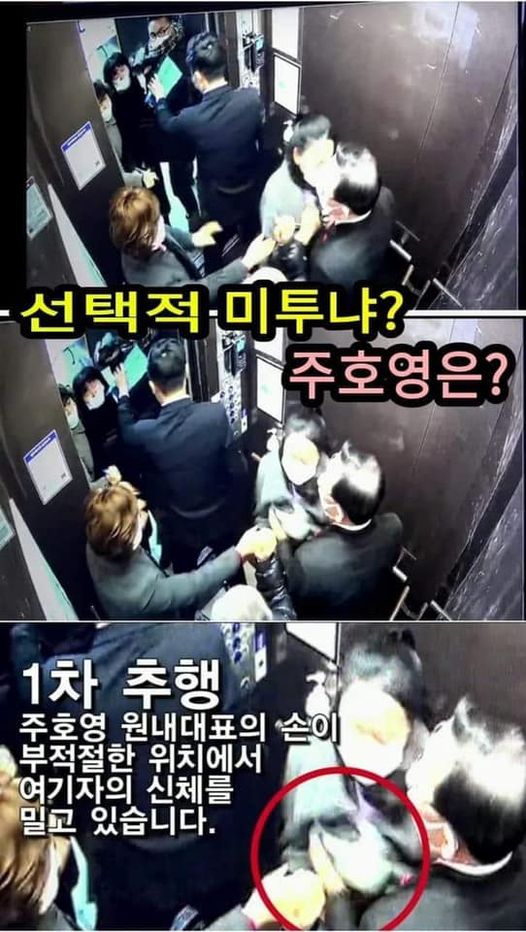 철저히 언론이 보호막을 쳐주는 가운데 가해자인 주호영 원내대표는 무력을 동반한 성추행 CCTV영상 물증이 있는데도 사과 한마디 없이 전혀 없었던 일처럼 적반하장 '유체이탈 화법'을 쏟아내고 있다. 문제는 이를 보도하지 않는 언론이 있기 때문에 저리 당당한 것이다.