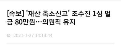 [윤재식 기자]= 동아일보 기자 출신 조수진 국민의힘 의원이 27일 종일 시끌시끌하다. 고민정 더불어민주당을 의원을 향한 "후궁" 성희롱 막말로 오전부터 시끄럽더니 오후에는 11억대 재산을 고의로 축소 신고하고도 벌금형에 그쳐 국회의원직을 유지하게 됐기 때문이다.
