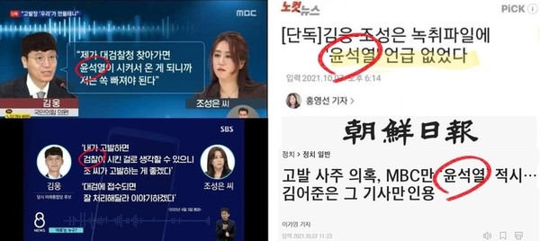 앞서 MBC를 제외한 대부분의 매체들이 윤 전 총장의 이름이 나오지 않는다는 취지로 보도했으나, 이날 실제 녹취록을 통해 김 의원이 윤석열’을 3번이나 언급하고 조 씨에게 고발을 위한 구체적인 지침까지 내리는 것으로 확인됐다.