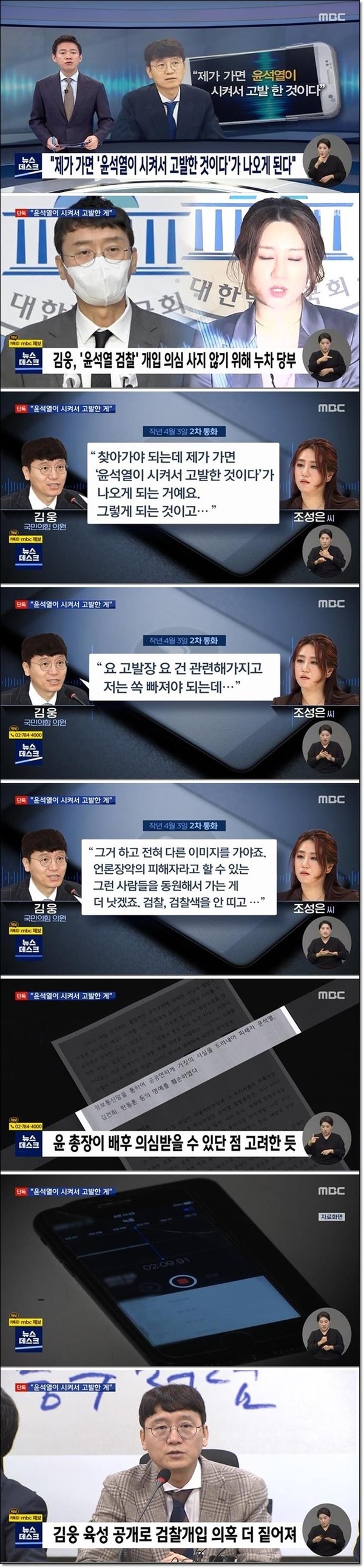 MBC 'PD수첩'은 전날 저녁 김웅 국민의힘 의원과 고발사주 의혹 제보자 조성은씨의 지난해 통화 녹취록을 공개했다. 녹취록에서 김웅 의원이 조성은 씨에게 “제가 가면 ‘윤석열이 시켜서 고발한 것이다’가 나오게 된다”라고 말하는 것이 분명히 확인됐다.