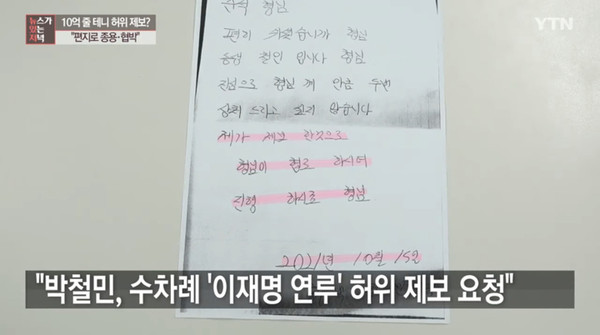 10일 밤 늦게 YTN이 박철민씨가 지난 8월부터 이준석 전 대표와 그의 변호사에게 보낸 7~8통의 서신 중 일부를 입수해 공개했다. 박씨는 현재 공갈 등의 혐의로 징역 4년 6개월을 선고받고 수원 구치소에 수감 중이다.