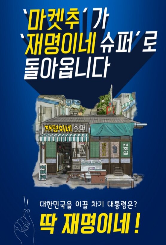 '마켓추' 운영진들은 페이스북과 홈페이지 등을 통해 이 후보 홍보 지원 사실을 알리고 오는 30일부터 활동을 시작할 방침이라고 전했다. 추 전 장관의 성(姓)을 딴 ‘마켓추’라는 명칭은 ‘재명이네 슈퍼’로 변경했다.