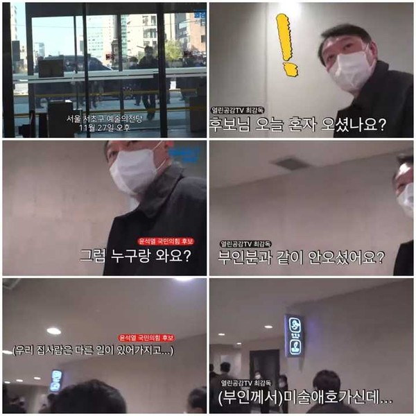 이날 매체의 기자가 윤 후보에게 “부인과 같이 안오셨습니까?”라고 질문을 하자 이들은 “쓸데없는 질문하지 말라”고 취재를 훼방 놓고 기자를 발로 차는 등 폭행 장면 등이 고스란히 영상에 잡혔다.
