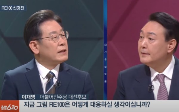 그는 윤 후보를 향해 “주택 청약 만점 기준을 묻는 상대 후보의 질문에 대해 잘못된 수치를 언급해 조롱을 당한 것은 물론, 본인이 화두를 던져온 에너지 분야에서 중요하게 다뤄지고 있는 RE100의 기본개념조차 알지 못해서 'RE100이 뭐죠?'라고 되묻는 등 함량 미달의 후보”라며 “대통령이 될 준비가 되지 않은 후보라는 것을 여실히 드러냈다. 참담했다”라고 개탄했다.