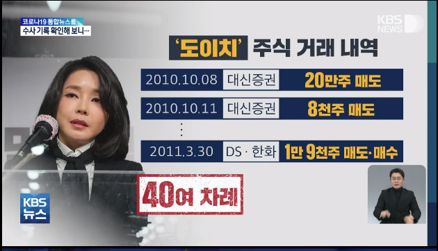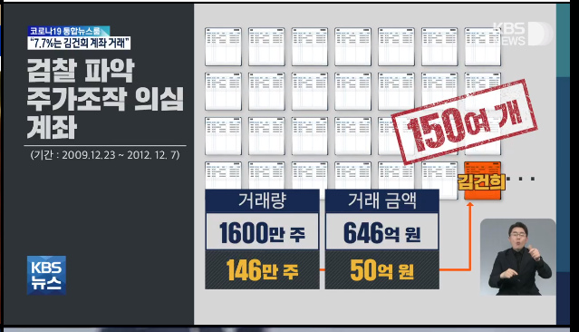 KBS 보도에 따르면 주가 조작 범행 기간에 김건희씨 계좌를 이용한 주식 거래가 다수 있었고, 검찰은 이걸 이 사건 피고인들의 범죄 근거로 판단한 것으로 드러났다.