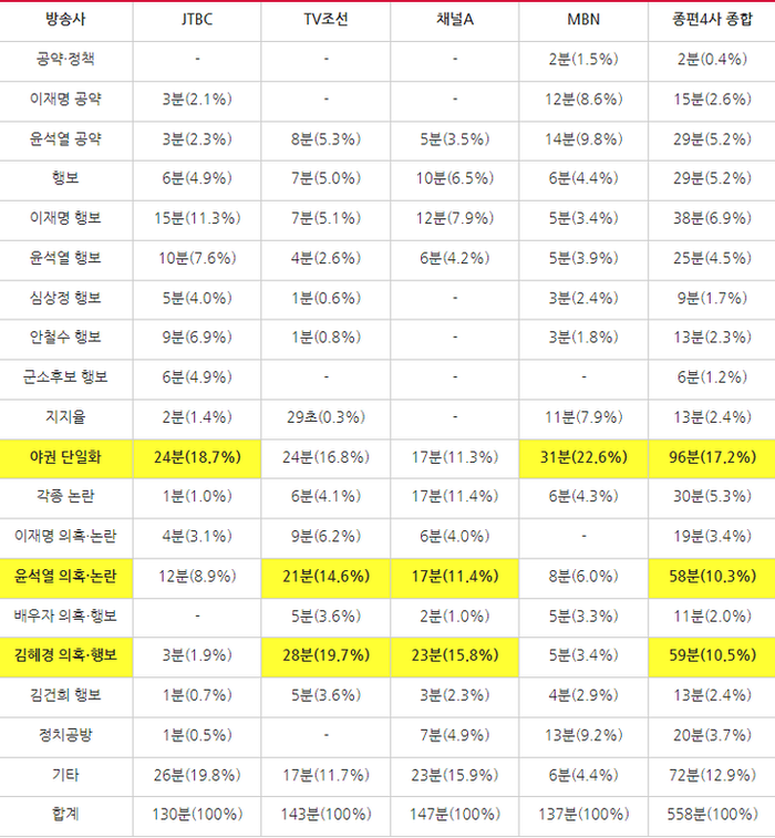 김혜경-김건희 의혹, 공정성 어긴 방송시간