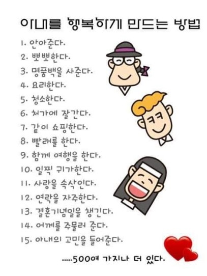 아내가 행복해야 인생이 행복하다는 것을, 잊으면 안 됩니다. 우리 모두 아내를 사랑해야 하는 이유를 충분히 아셨는지요!