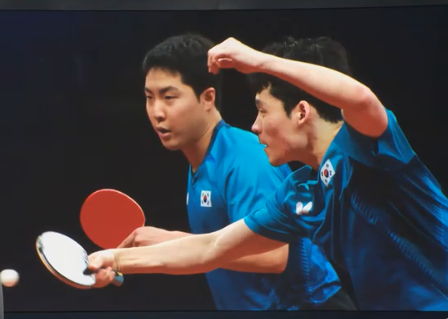 세계 12위 대만 조를 맞아 첫 게임을 가볍게 따 낸 장우진과 임종훈. 두 번째 게임이 분수령이었다.