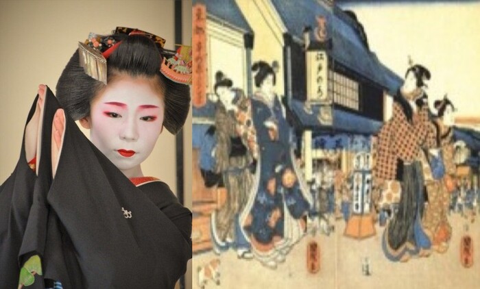 상상해보라. 눈썹이 이마 바로 아래 있고 검은 색칠을 한 이를 드러내며 웃은 여성, 그게 당시 일본의 미인이었다. 여기에 일본의 예인이라고 할 수 있는 게이샤는 한발 더 나아간다. 흰 분칠을 한 얼굴에 새빨간 립스틱을 바른다. 오늘날 미적 관점에서 도저히 미인으로 간주할 수 없는 기괴한 모습이다.