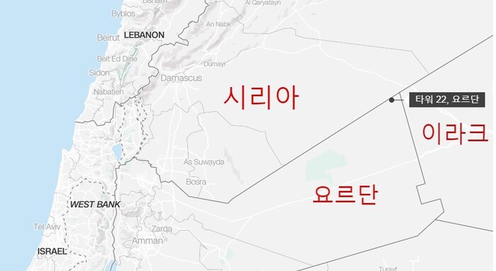 CNN 등 외신들은 28일(현지시간) 요르단내에 있는 미군 기지인 '타워22'가 무인기 공격을 받아 장병 3명이 숨지고 30명 이상이 다쳤다고 보도했다.