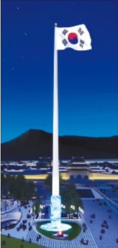 이곳에 사업비 110억 원을 들여 높이 100m의 ‘대형 태극기’를 게양대를 건립한다는 것이 포함되어 있었다. 일각에서 ‘애국심 강요’, ‘국가주의적 발상’, ‘권위 시대로의 회귀’라고 주장했다. 비판에 부딪힌 ‘광화문의 대형 태극기’는 사실상 물 건너갔다. 하지만 국가상징을 어떻게 표현해야 하는 것인지에 대한 많은 질문을 던졌다.