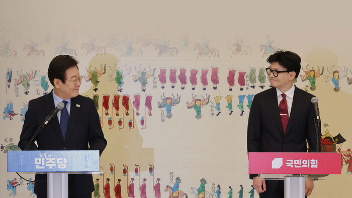 사실 국민은 여야 대표회담에서 큰 결실을 기대하지 않았다. 의미 있는 결과를 희망할 수 없는 상황이었다. 두 사람의 관심 의제가 달랐다. 핵심 쟁점에 대한 간극도 컸다. 거기다가 윤·한 갈등으로 한동훈 국민의힘 대표의 당내 입지는 현저히 좁아진 상황이었다. 그나마 공동발표문을 낸 것은 다행이다. ‘건의’, ‘검토’, ‘논의’, ‘촉구’, ‘당부’ 등으로 채워졌다. 구체성 없고 추상적인 합의였다. 공허하기 짝이 없다. 어떻게 첫술에 배부를 수 없겠는가.