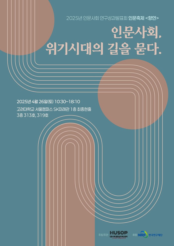 고려대학교 민족문화연구원 산하 인문사회통합성과확산센터(HUSOP센터)는 오는 26일 고려대 SK미래관에서 ‘2025년 인문사회 연구성과발표회, 인문축제 '향연’을 개최한다고 22일 밝혔다.