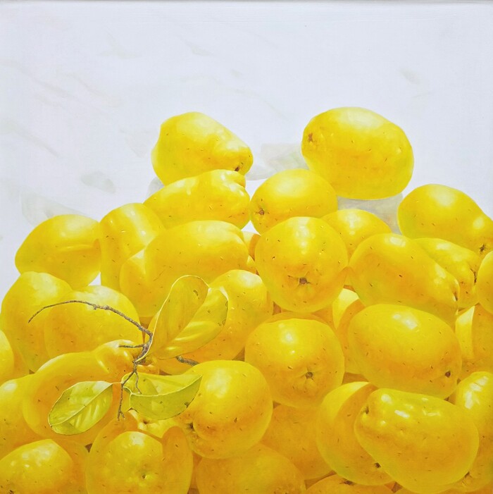 “색은 눈으로 보이고, 향기는 눈에 보이지 않는다. 하지만 이상하게도 우리는 향기에 더 깊은 기억을 맡긴다. 꽃이 지고 시들면 향기만 남듯이 말이다.” 김광한 작가는 모과의 노란색으로 아련한 향기를 불러내고 있다. 물론 어떤 기억은 색으로, 어떤 기억은 향기로 양수겹장을 한다. “봄날의 기억은 연분홍이다. 학교 앞 벚꽃길을 걸을 때면 어김없이 코끝을 간질이던 달콤한 꽃향기. 그때는 왜 아이들이 그렇게 웃을 일이 많았는지, 벚꽃잎이 날리던 그 길 위에서 우리는 한없이 가볍고 반짝이는 존재였다. 시간이 흘러, 계절이 바뀌고, 나는 어른이 되었다. 바삐 삶속에 달려가다보면 색과 향기는 멀어지게 된다. 우리는 점점 감각을 무디게 살아간다.”