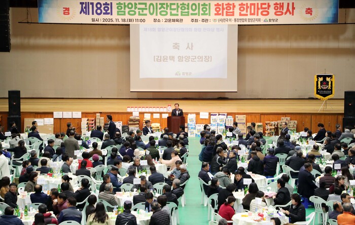 경남 함양군의회가 18일 고운체육관에서 열린 ‘제18회 함양군이장단협의회 화합한마당’에 참석해 지역 현장에서 주민과 행정을 연결하는 핵심 역할을 수행해 온 마을이장들에게 깊은 감사의 뜻을 전했다.