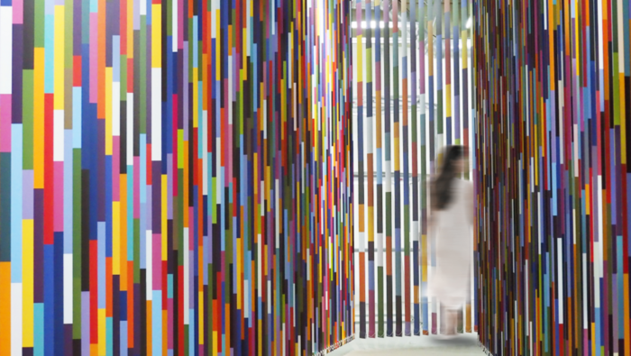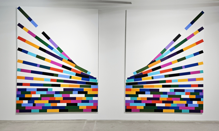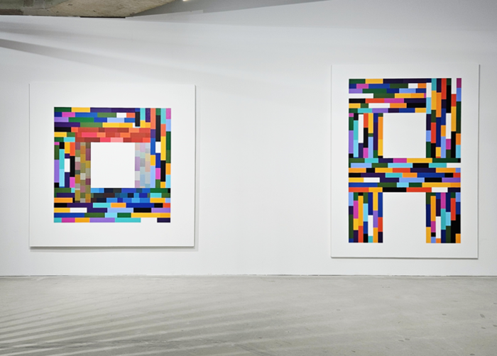 작가의 수작업으로 조합된 500여 종의 컬러는 디지털 밑그림과 손의 감각이 결합된 방식으로 일필휘지는 해체되고 대신 디지털 언어의 특성인 모듈화(Modularity)와 정확성(Precision)을 갖춘 색면 디자인이 그 자리를 대신한다.